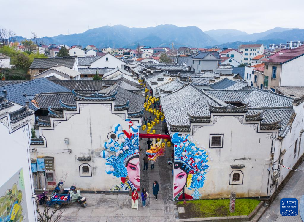 2月20日,游客在金华市金东区岭下镇坡阳古街上游览(无人机照片)。