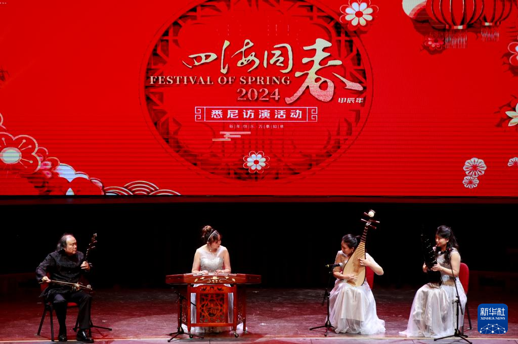 当日,“四海同春”悉尼访演活动在澳大利亚悉尼市政厅举行。演出汇集歌舞、杂技、武术、京剧、乐器演奏等形式,为当地华侨华人呈现一场极具中国韵味和春节喜气的文化大餐。