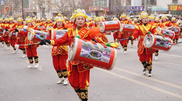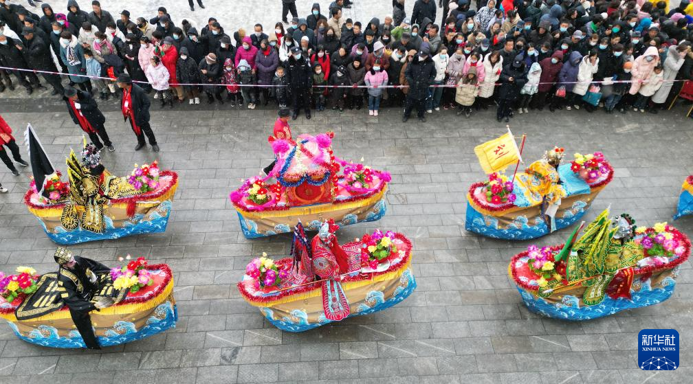 2月22日,河北省遵化市东旧寨镇石桥头村的民间艺人在表演民俗节目。
