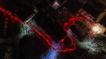 2月21日晚,在河北省遵化市山里各庄景区拍摄的龙灯和游客(无人机照片)。
