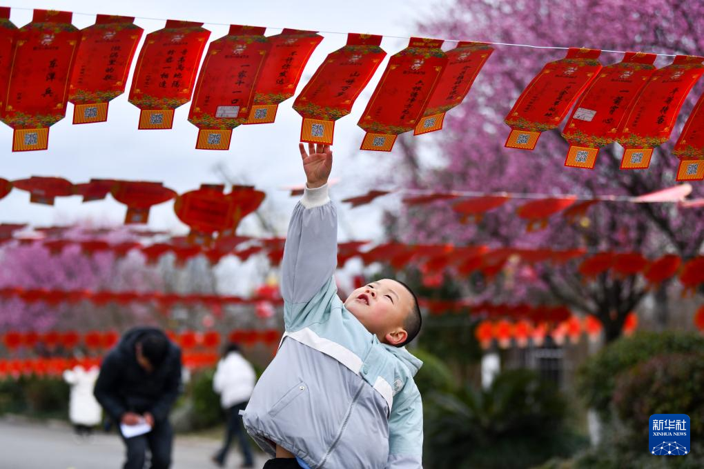 2月22日,在贵州省遵义市余庆县观光园,一名小朋友在猜灯谜。