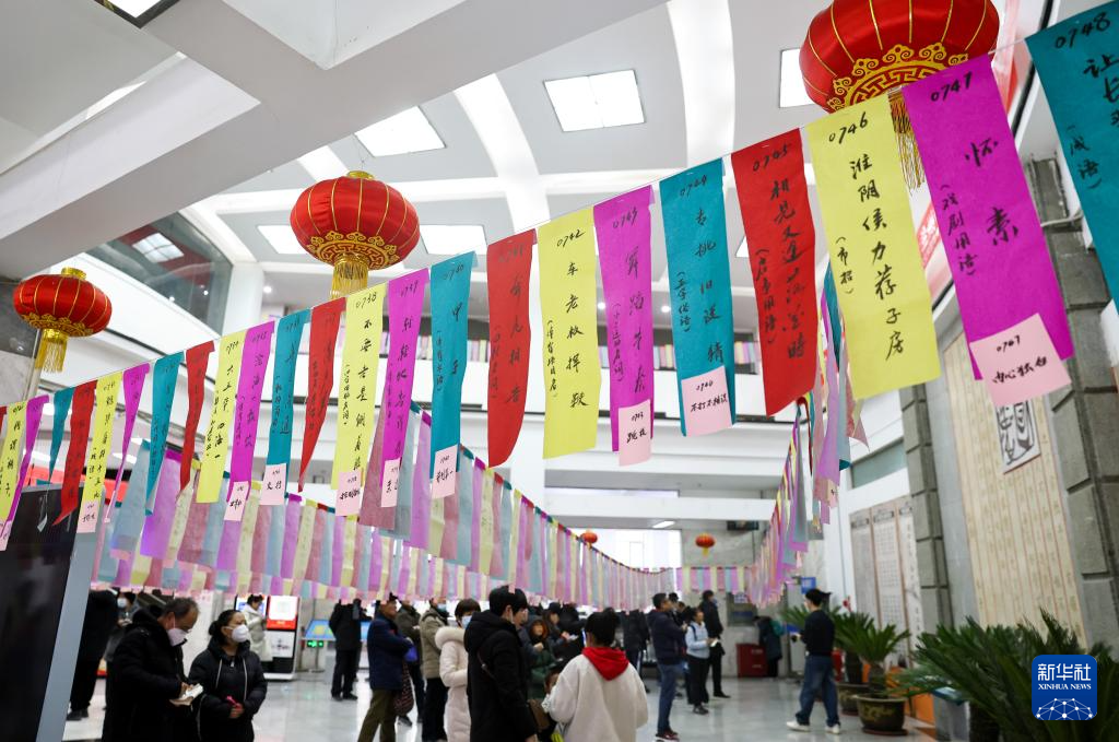 2月22日,在甘肃省兰州市图书馆,市民在猜灯谜。