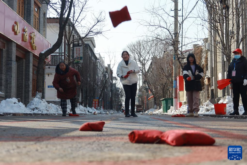 2月22日,村民在河北省邯郸市邯山区河沙镇镇南街村参加投沙包比赛。