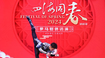 2月20日,在宁夏银川市,参赛社火队的演员表演传统社火项目。
