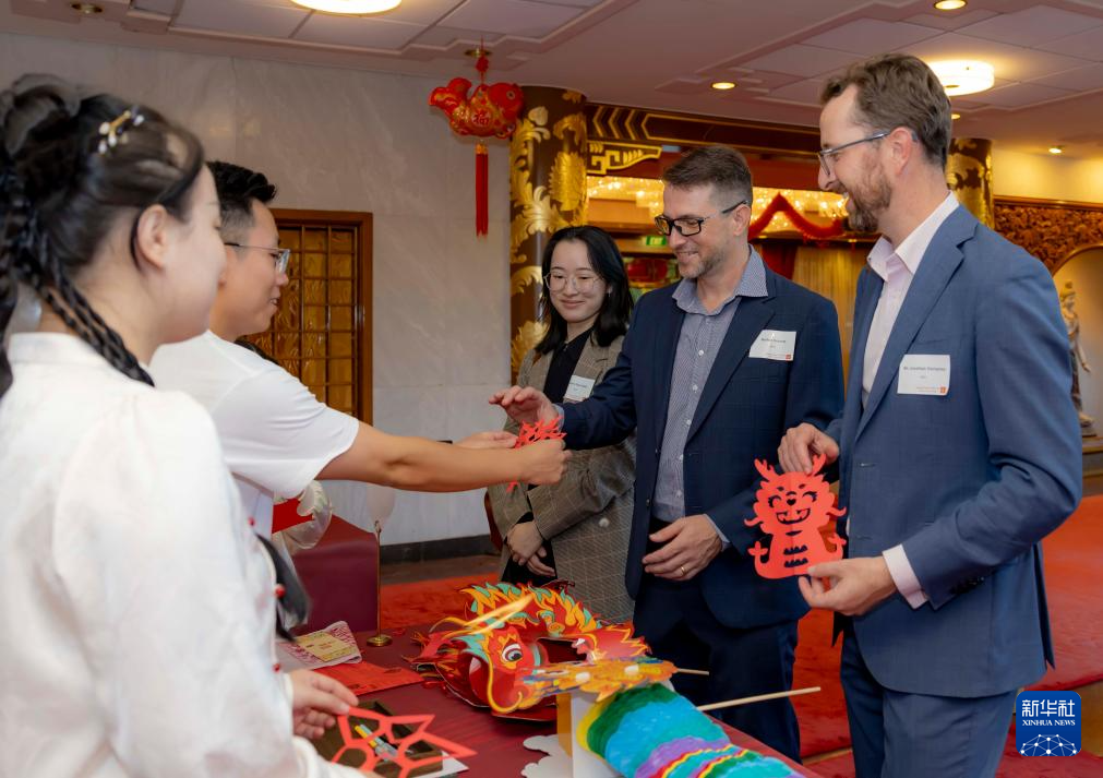 2月27日,在澳大利亚堪培拉中国驻澳大利亚大使馆,来宾欣赏中国剪纸艺术。
