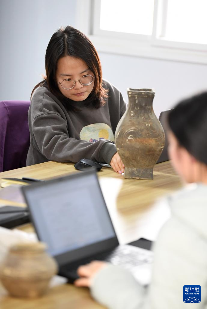 3月5日,陕西省考古研究院女子考古队队长朱瑛培在登记文物信息。