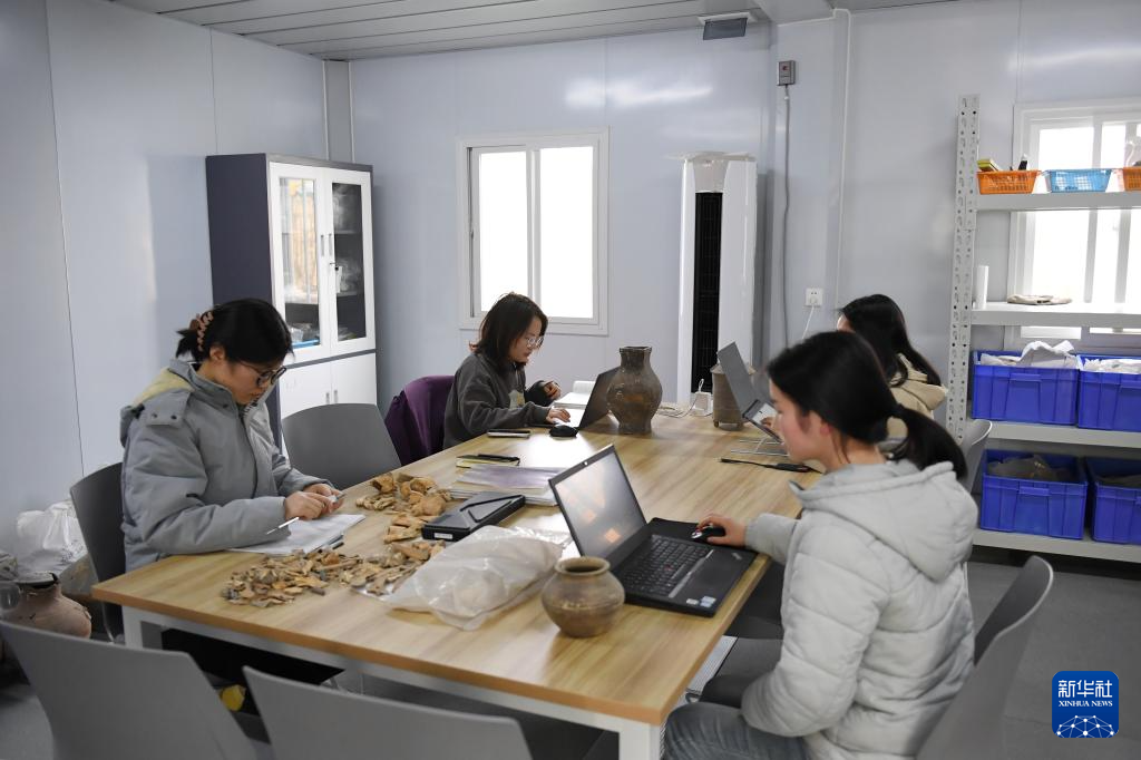 3月5日,陕西省考古研究院女子考古队的部分队员在登记文物信息。