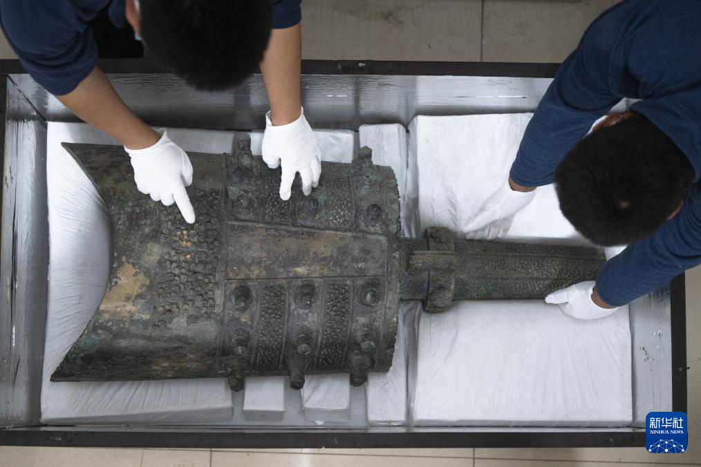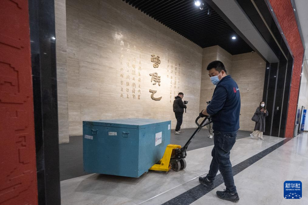 在湖北随州博物馆,工作人员对曾侯與甬钟进行打包(2月27日摄)。