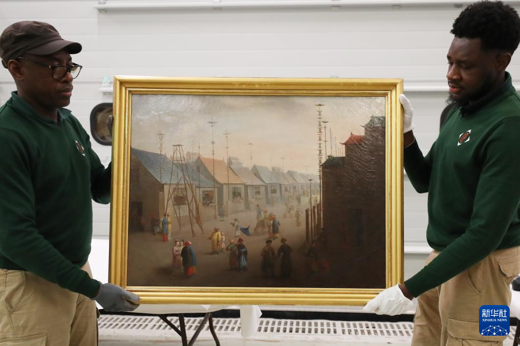 3月11日,在法国巴黎近郊的凡尔赛宫,工作人员准备打包油画《南京的集市》。