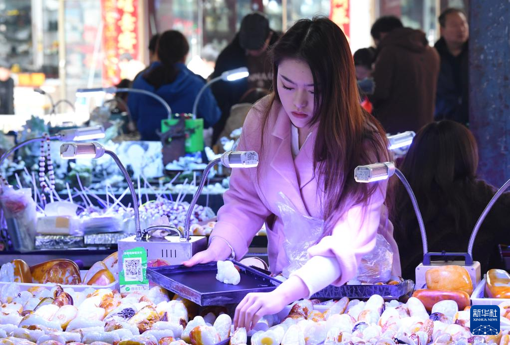 3月13日,顾客在河南省南阳市镇平县玉石交易市场选购玉石产品。