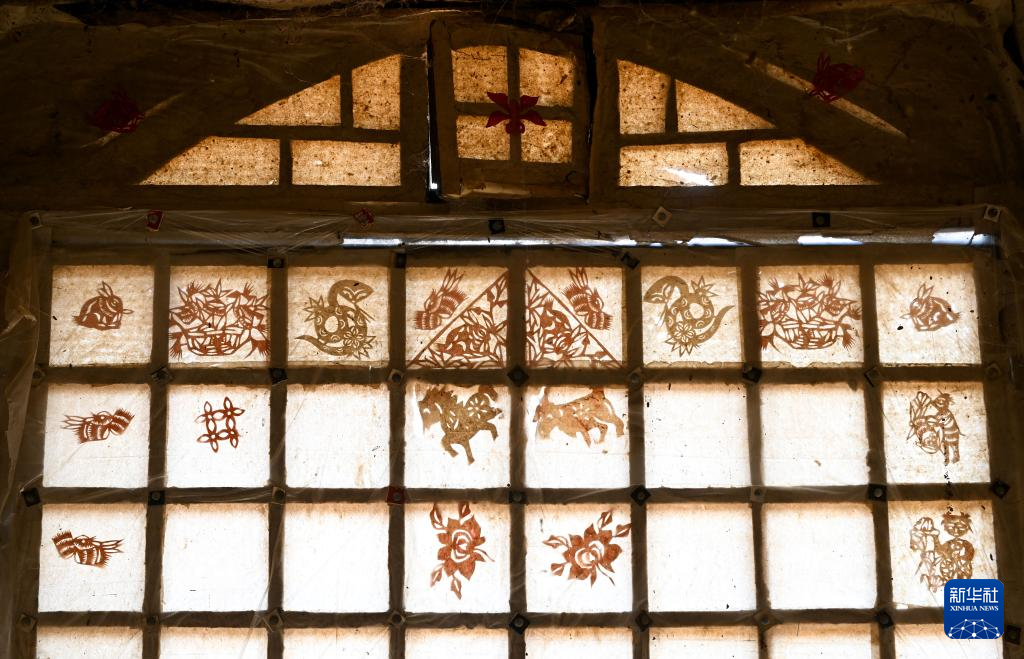 这是在内蒙古呼和浩特市和林格尔县羊群沟乡梁巧连故居中拍摄的传统窗框和剪纸(3月15日摄)。