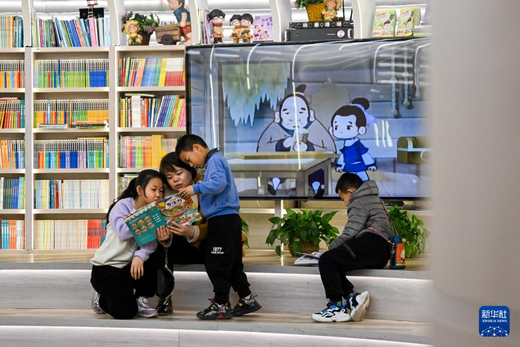 3月24日,小朋友与家长在呼和浩特市回民区的新华书店(中山路店)阅读。