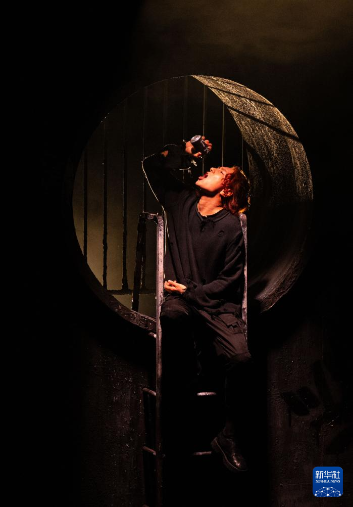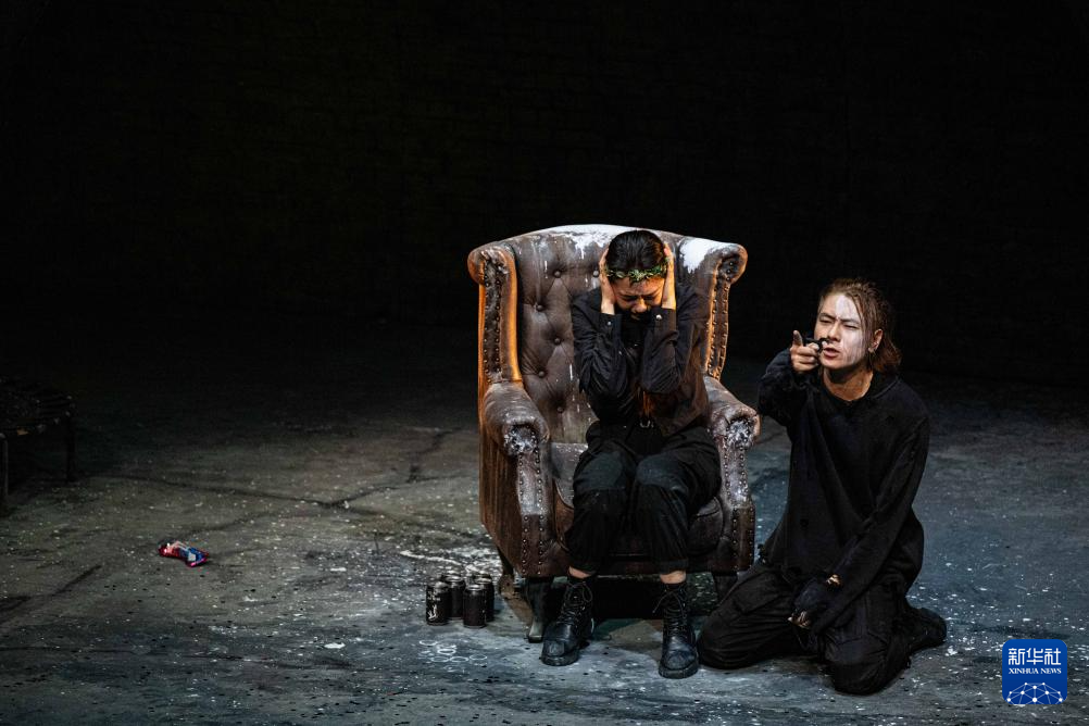 4月5日,演员在话剧《哈姆雷特》的演出中。
