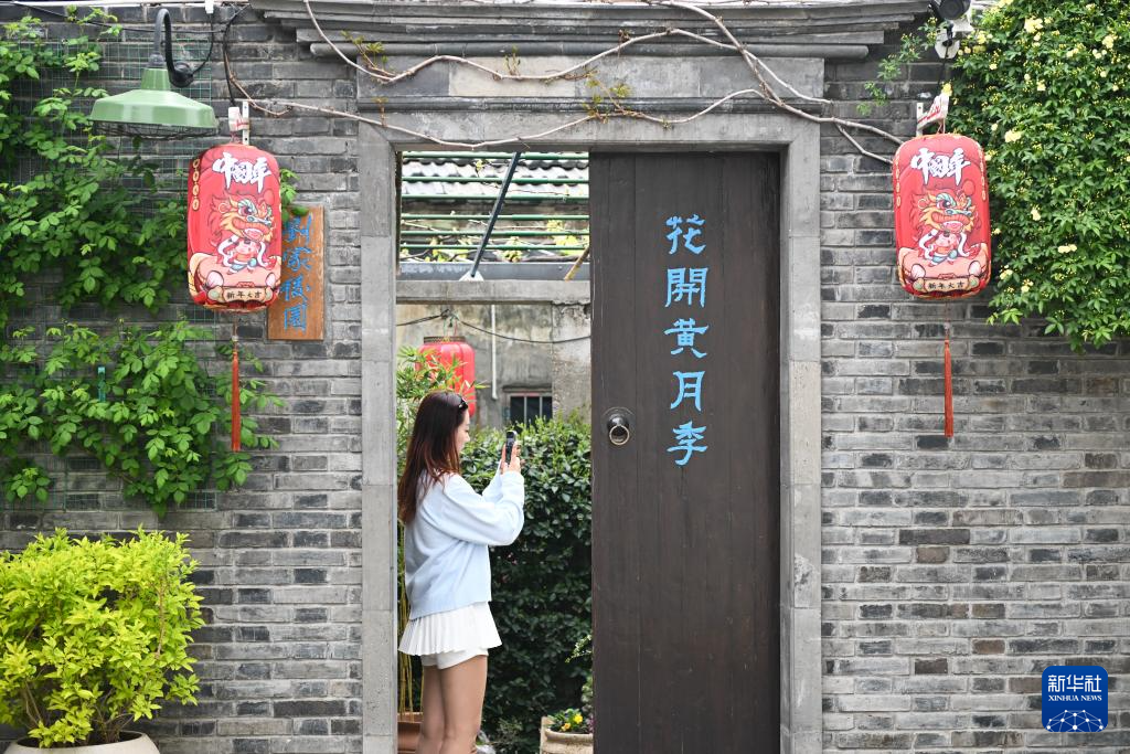 游客在小西湖街区一处“共享院”参观(4月1日摄)。