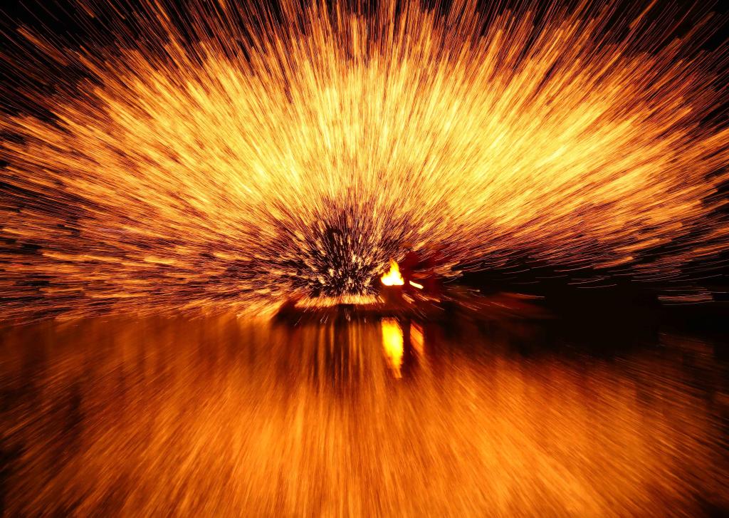 2024年4月8日,广西壮族自治区柳州市融安县雅瑶乡,民间艺人在表演打铁花。CICPHOTO/韦荣军 摄