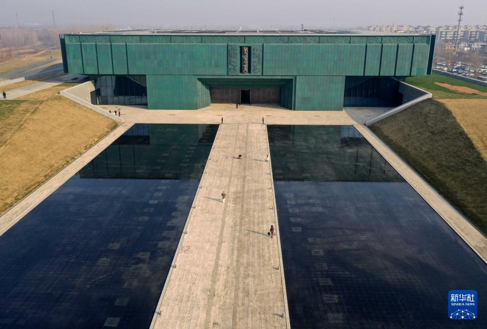 这是2024年2月26日拍摄的位于河南省安阳市的殷墟博物馆新馆(无人机照片)。