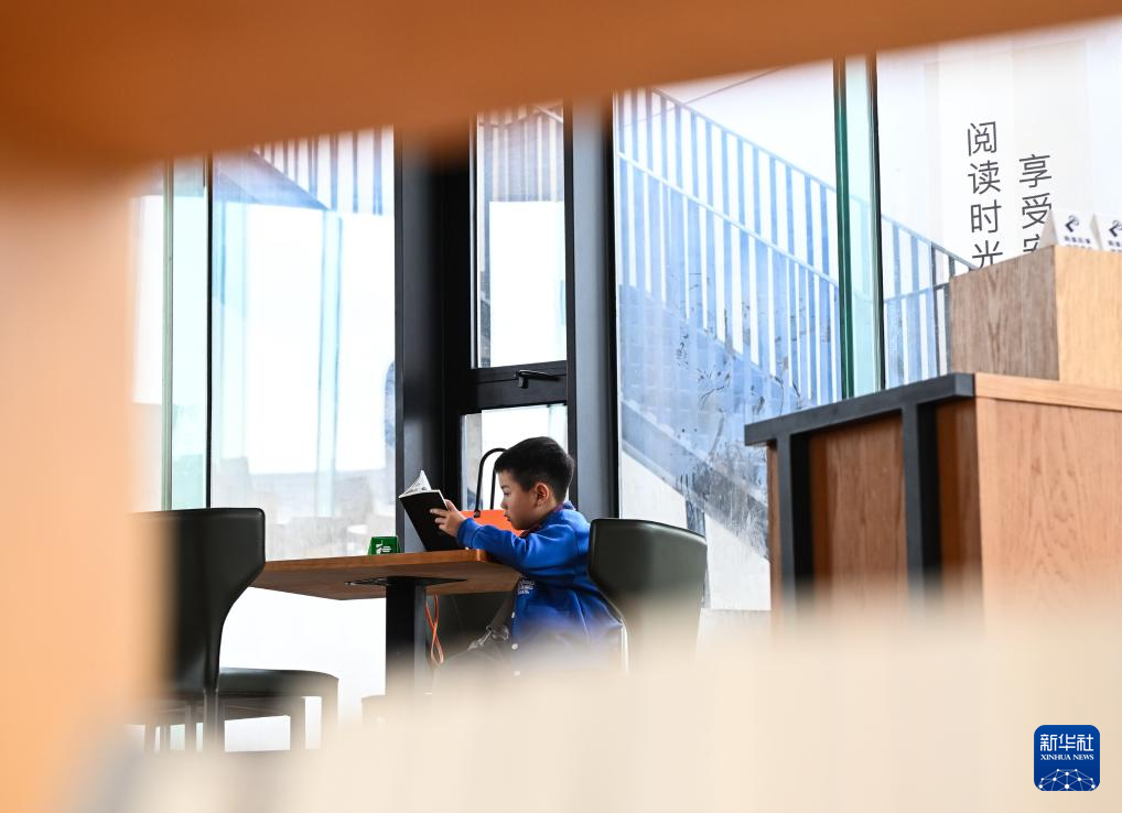 4月21日,小朋友在溧阳市方所文化村天目书塔享受阅读时光。