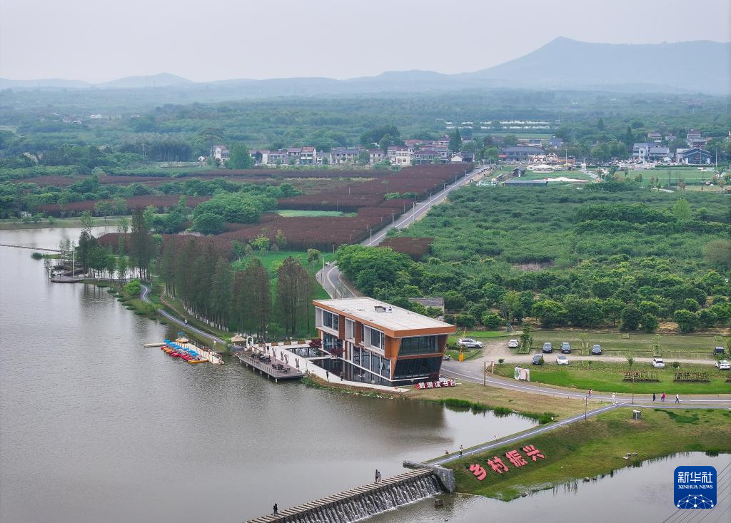 这是4月21日拍摄的溧阳市石塘村瓦尔登书局及周边环境(无人机照片)。