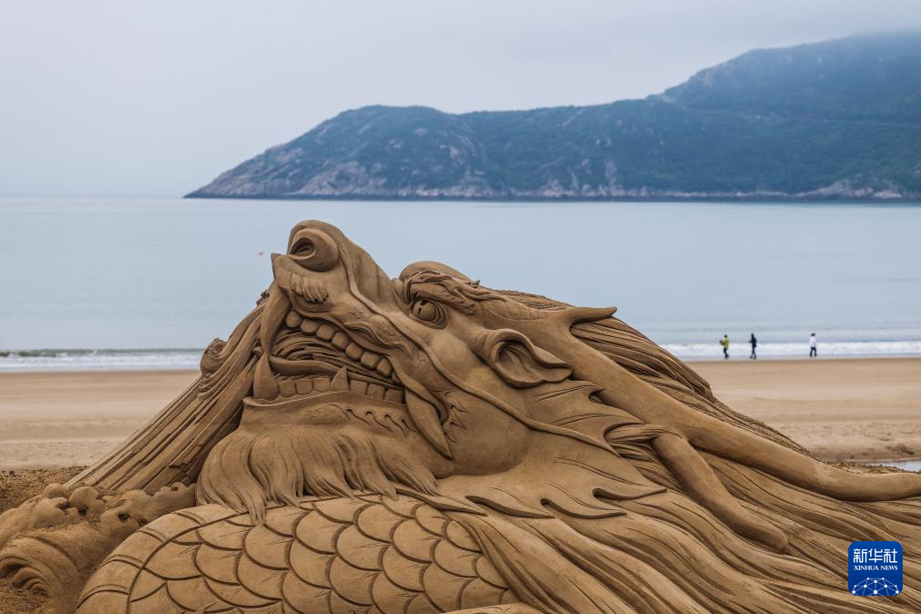 这是舟山朱家尖南沙景区内的巨龙沙雕(4月22日摄)。