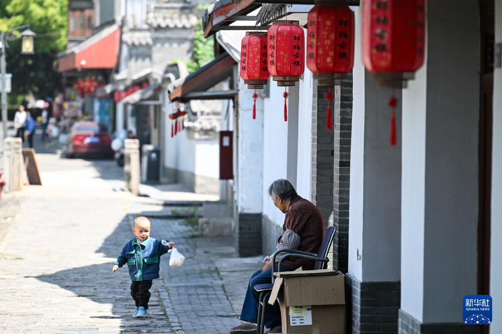 位于扬州江都区的邵伯古镇(4月25日摄)。