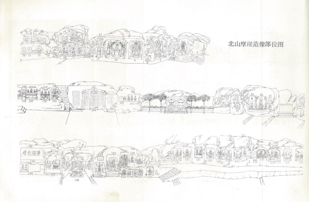 郭相颖绘制的北山摩崖造像部位图。(大足石刻研究院供图)