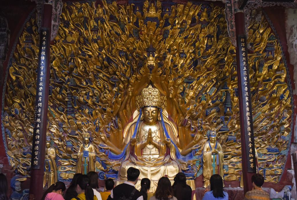 1952年,大足石刻文物保护机构成立,开始系统科学保护大足石刻。当年,北山石刻保护长廊启动建设,北山石刻上方加盖了挡雨的顶棚;1961年,北山、宝顶山摩崖造像成为第一批全国重点文物保护单位;1999年,大足石刻被列入《世界遗产名录》;2015年,全国石质文物保护一号工程——大足石刻千手观音造像抢救性保护工程竣工;2019年,《大足石刻全集》出版,填补了国内石窟寺编写出版大型考古报告的空白……