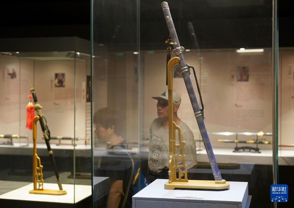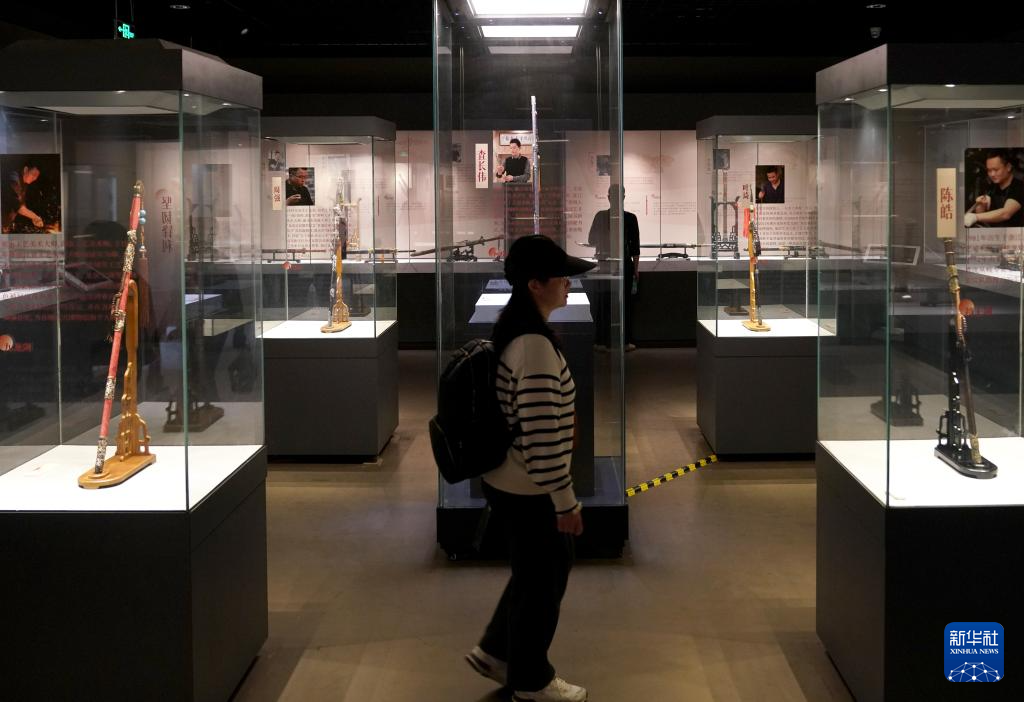 5月7日,观众在浙江省博物馆孤山馆区观看龙泉宝剑精品展。