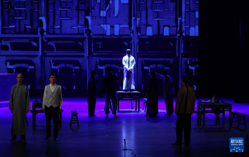 当日,中国人民大学附属中学分校戏剧实践课程开展成果展示,高中学生们在北京国安剧院演出大型四幕话剧《呐喊》,生动演绎了鲁迅笔下阿Q、孔乙己、祥林嫂等众多经典形象。