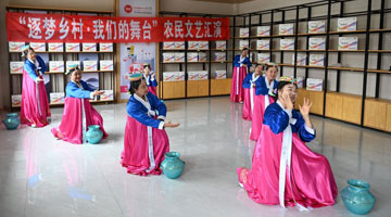 5月11日,居民在内蒙古兴安盟乌兰浩特市乌兰哈达镇三合村表演舞蹈。