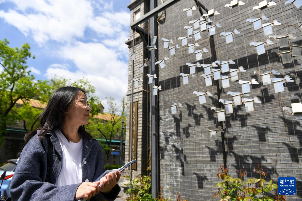 5月1日,游客在位于东四南大街和史家胡同路口处的“微花园”参观游览。