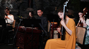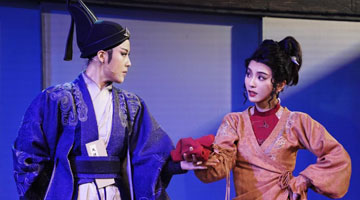 5月14日,时敬华(右)为伙伴整理乱弹服饰。