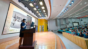 5月15日,时敬华(右一)在威县乱弹纪念馆为戏曲爱好者介绍乱弹知识。