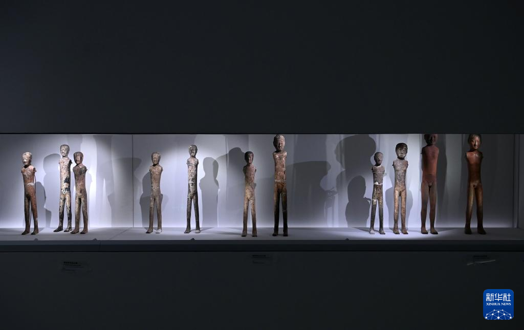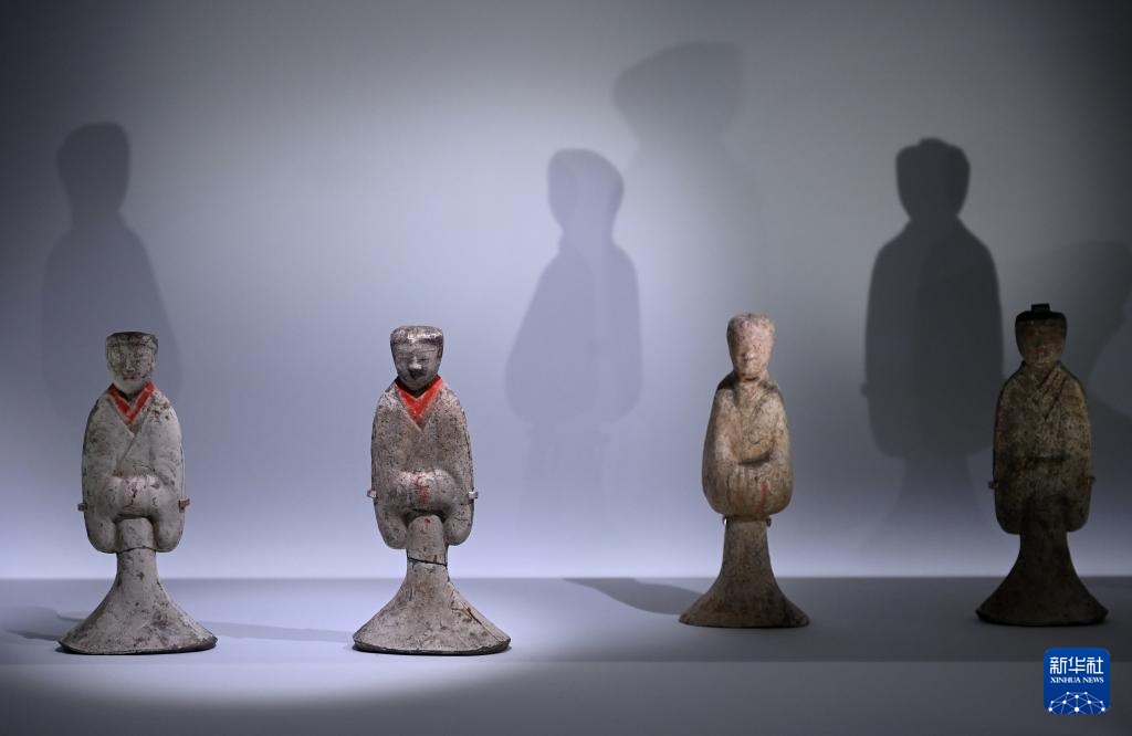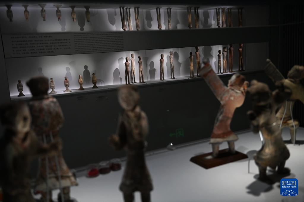 陕西历史博物馆秦汉馆内展出的西汉彩绘着衣式俑(5月13日摄)。