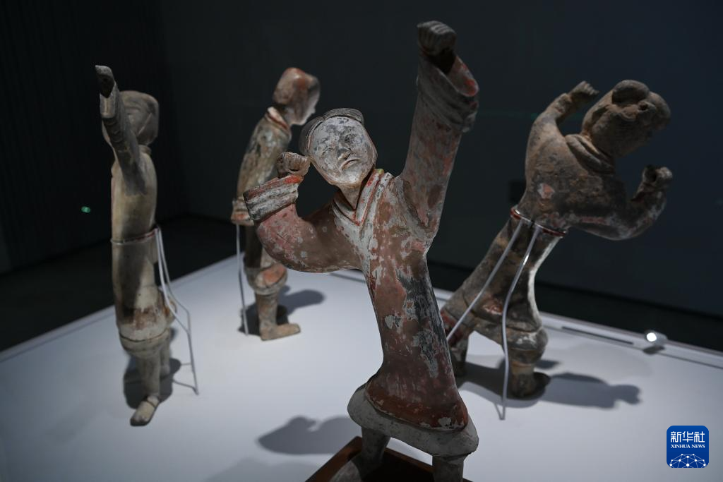 陕西历史博物馆秦汉馆内展出的西汉彩绘立射俑(5月13日摄)。