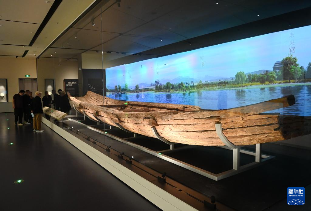 5月6日,观众在陕西历史博物馆秦汉馆参观文物汉代古船“丝路一号”。