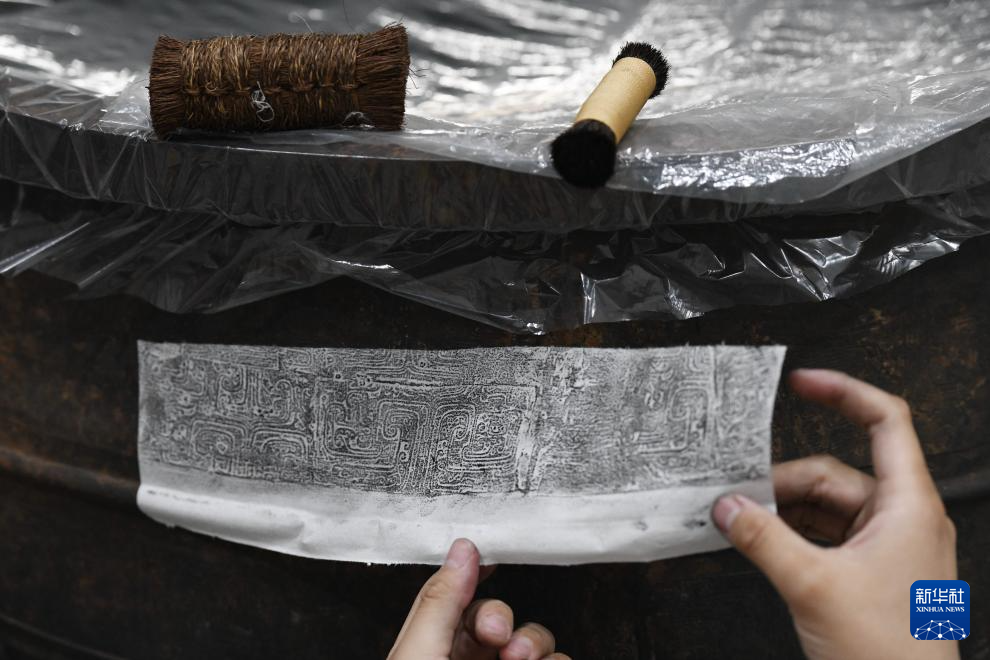 5月20日,考古人员在武王墩考古实验室观看文物细节。