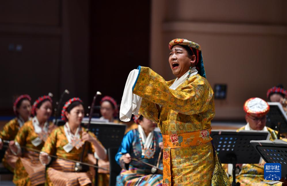 5月20日,在西藏传统民族音乐会《吉祥妙音》演出现场,演员演唱堆谐《阿觉索朗多布杰》。