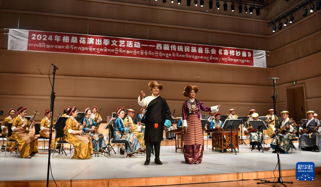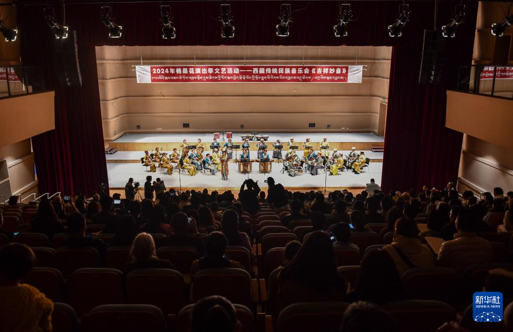 当日,由西藏自治区文化和旅游厅主办,西藏自治区歌舞团承办的西藏传统民族音乐会《吉祥妙音》在西藏大剧院演出。音乐会上,西藏特色乐种轮番上演,彰显优秀传统民族音乐魅力。