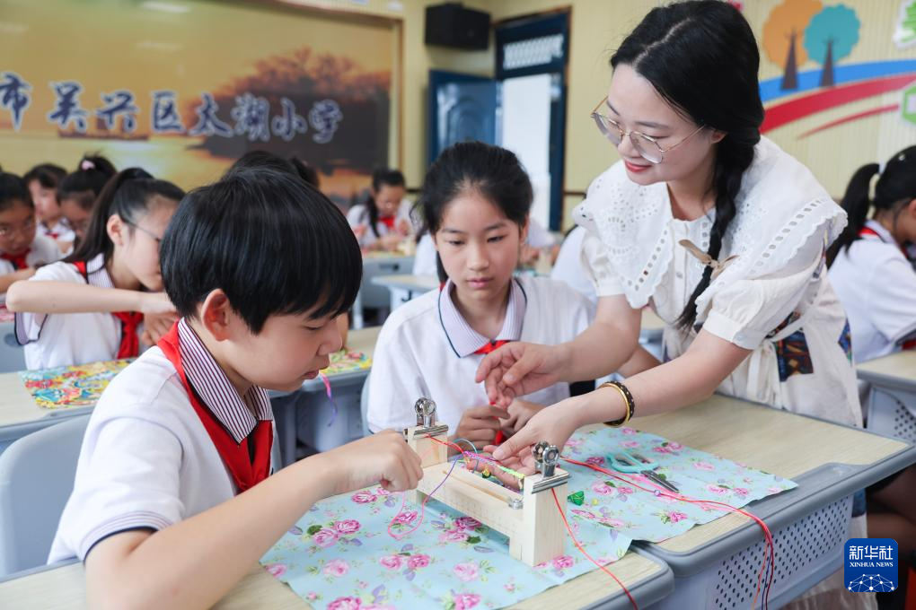 从今年春季学期开始,浙江省湖州市吴兴高新区太湖小学开始设置以太湖溇港非遗文化传承为特色的跨学科项目化课程,既丰富了学生们的课间生活,提升全身心体验活动的专注力和合作交往能力,又让他们能积极参与到特色非遗文化的传承和劳动素养的培养中,引导学生德智体美劳全面发展。
