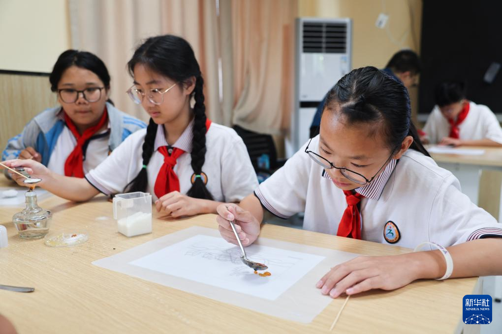 5月22日,太湖小学的学生们在特色课程上学习“糖画”制作。
