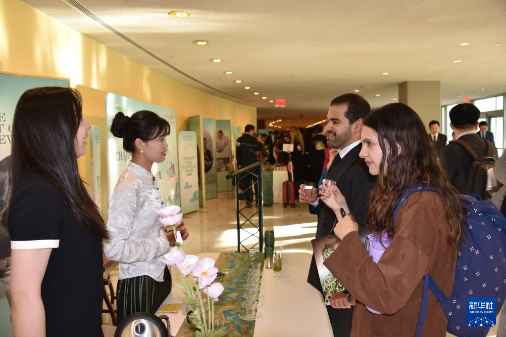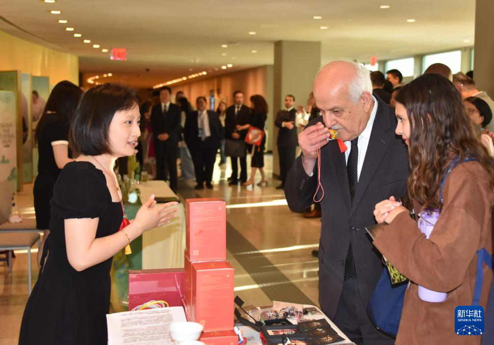 5月21日,在位于纽约的联合国总部,人们参加“茶和天下”国际茶日展示和庆祝活动。新华社记者 王建刚 摄