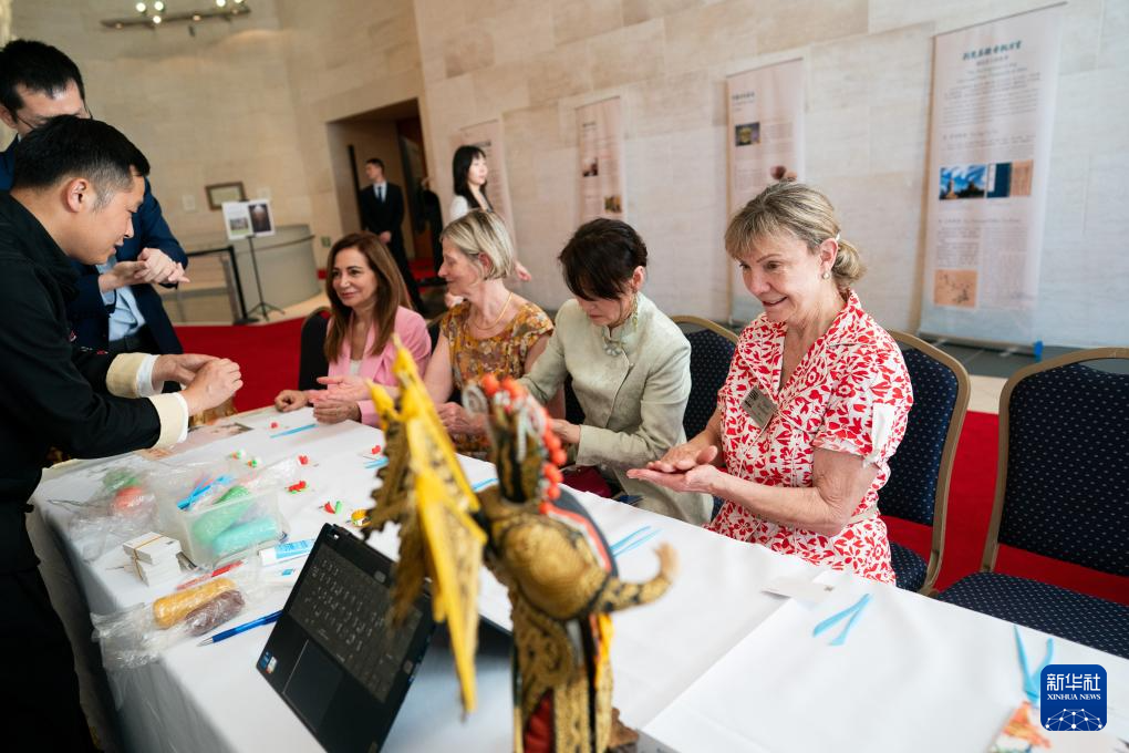 5月21日,在美国华盛顿,来宾在“茶和天下·雅集”活动上体验武汉面塑。新华社记者 刘杰 摄