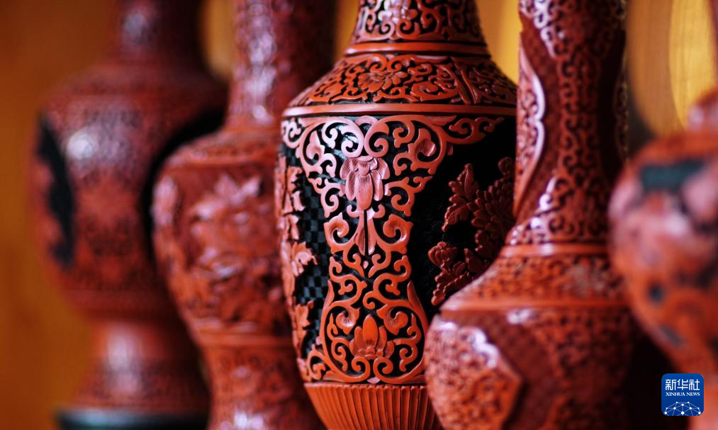 朱江设计的实用性雕漆工艺品(6月5日摄)。