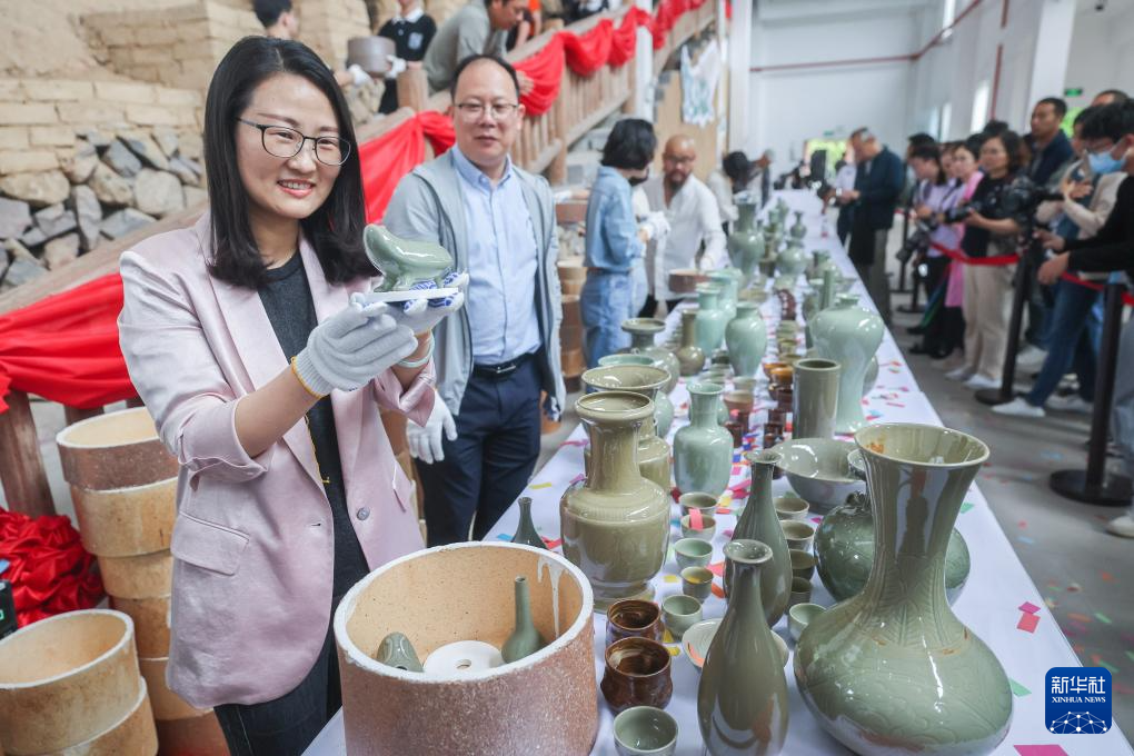 5月29日至6月6日,在浙江慈溪市上林湖青瓷传承园,当地断烧千年的传统龙窑烧制技艺在一座20多米长、2米高的仿古龙窑重现。