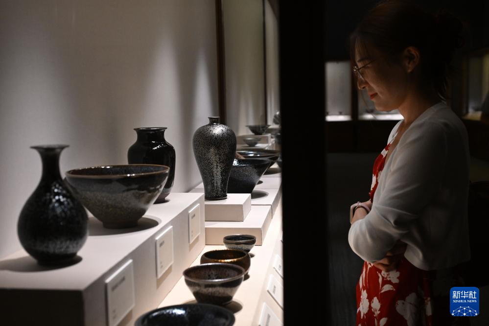 这是展出的建窑黑釉酱斑盏(6月26日摄)。