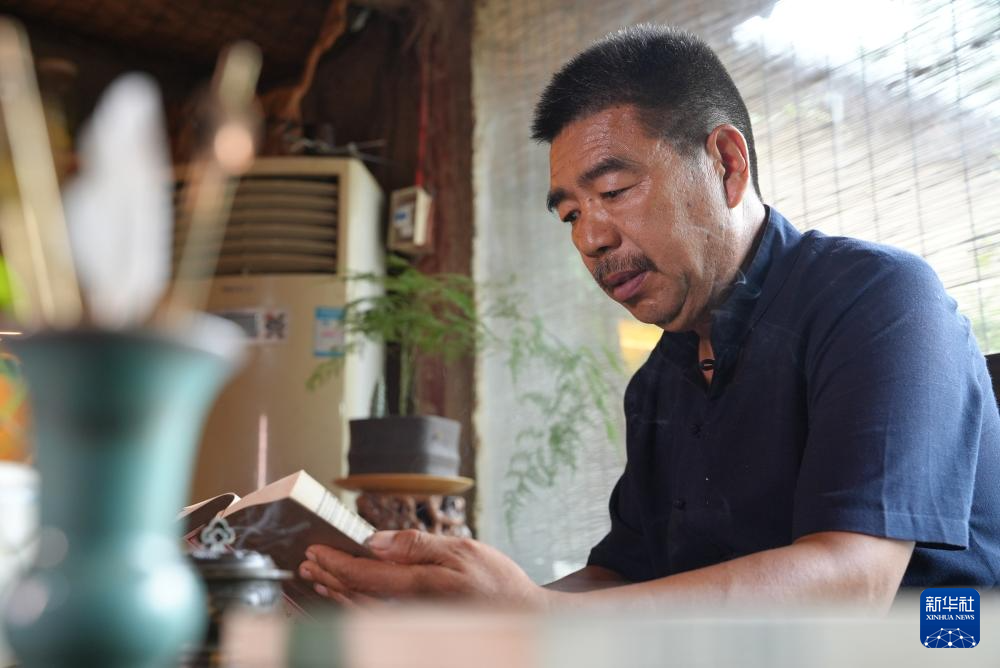 在河南省许昌市魏都区灞陵公园内的制香技艺传习所,青烟袅袅,香气氤氲,张书芳一边焚香,一边查阅着古籍中的制香配方。