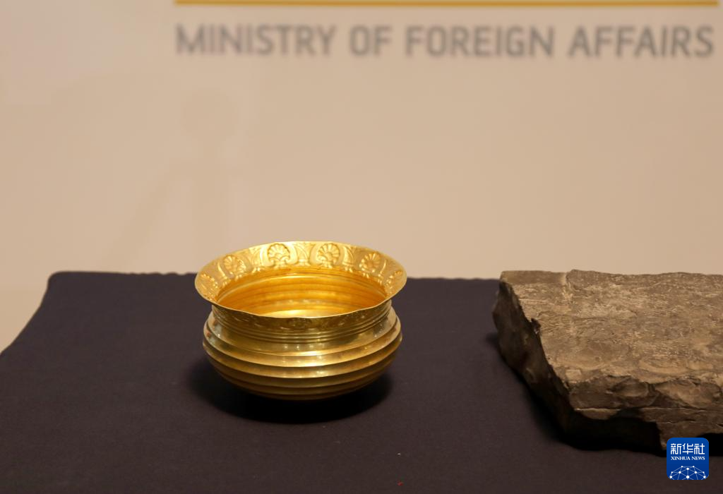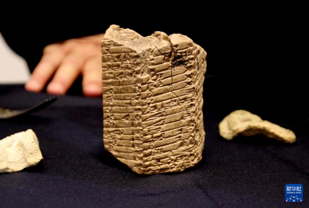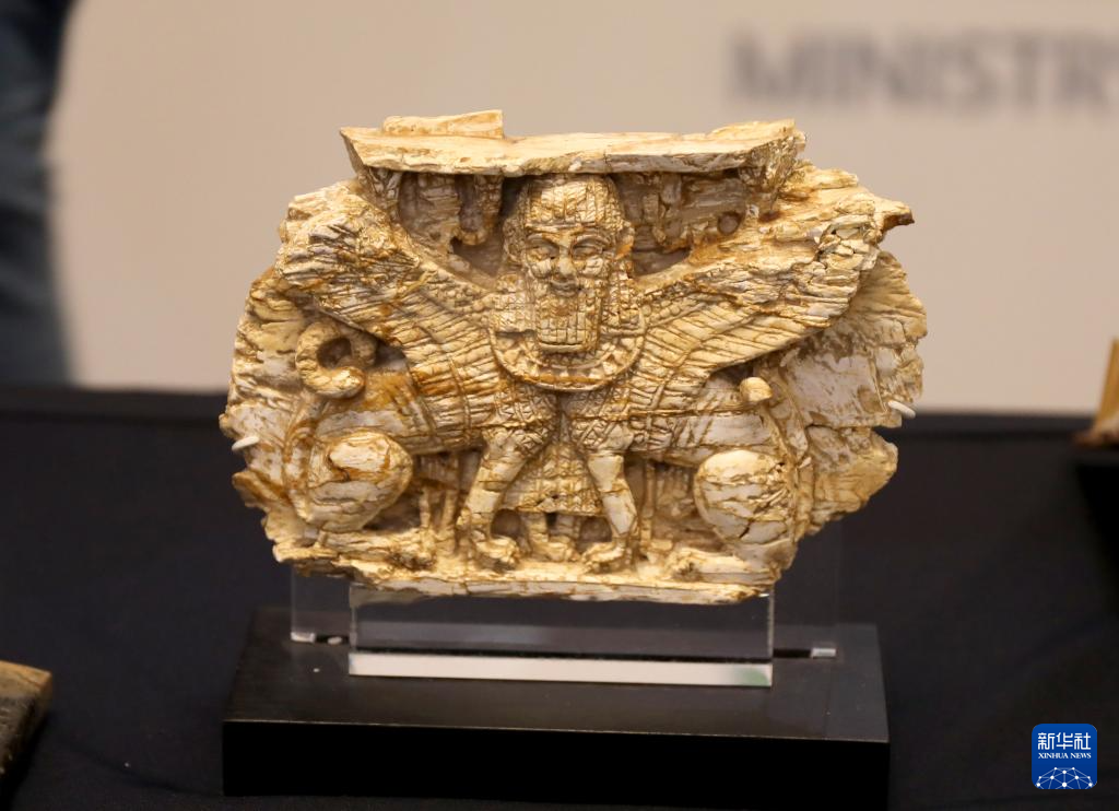 这是7月8日在位于巴格达的伊拉克外交部拍摄的伊政府新收回的流失文物。