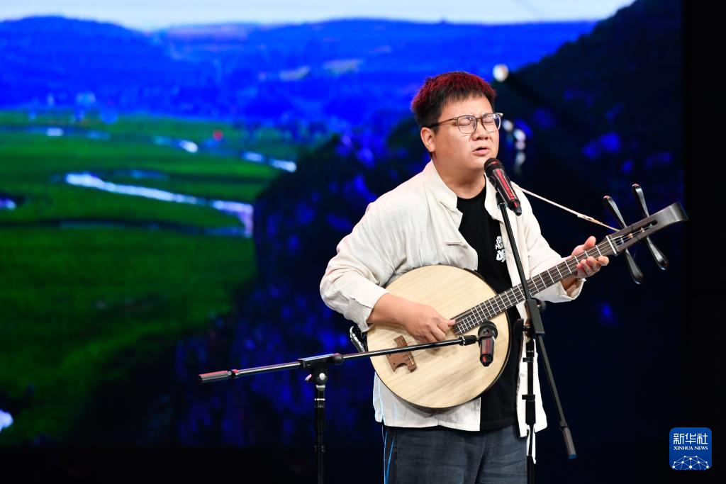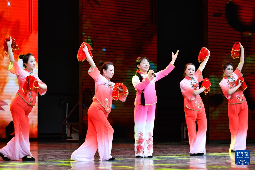 7月12日,演员演唱兰州鼓子《奋楫笃行续辉煌》。