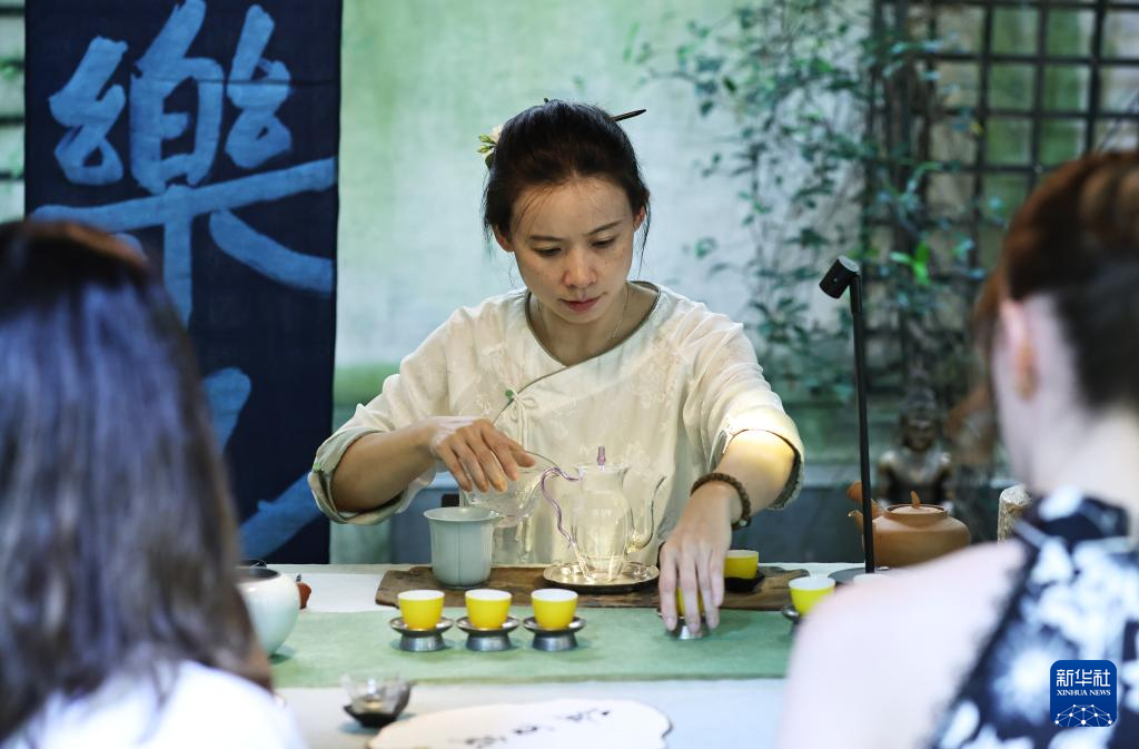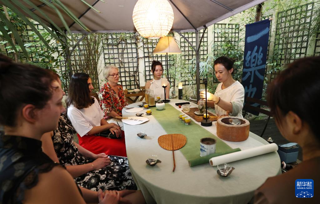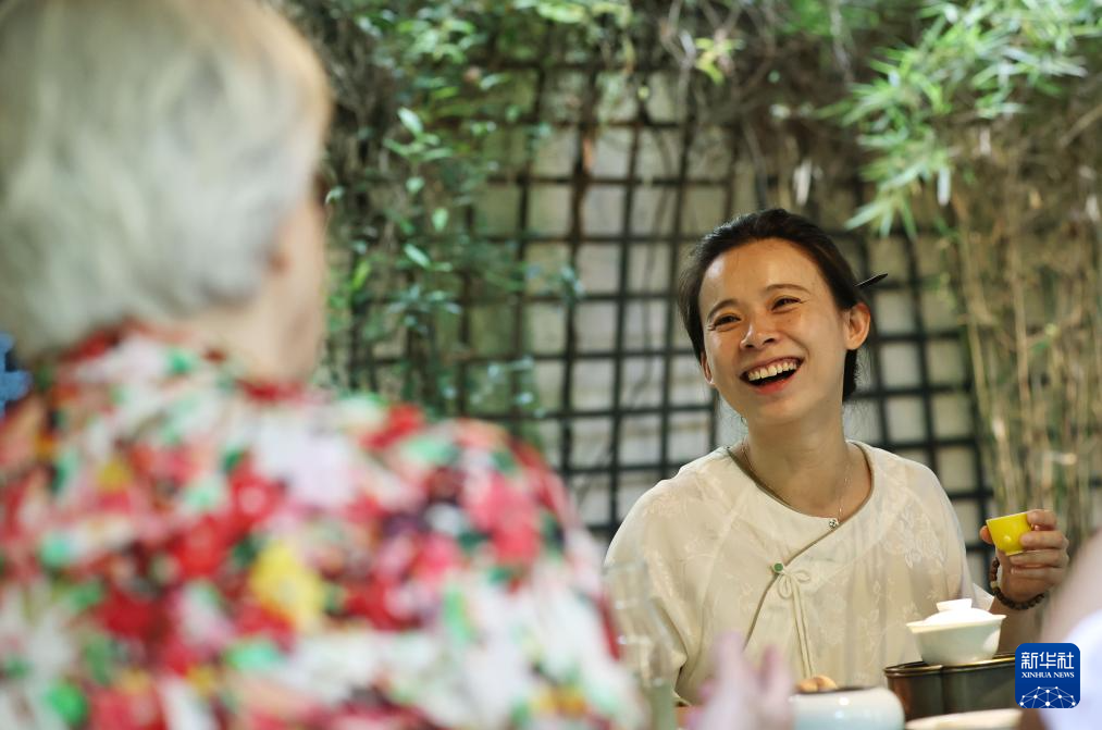 茶艺师张乐2022年在法国巴黎创立了“一乐也”中国茶工作室,每周在充满中式园林风情的小院里为来自法国、中国、摩洛哥、日本等地的学生上一到两次茶艺课。此外,她还在当地中小学、文化机构等担任茶艺教师。张乐表示,通过她的展示和介绍,很多人看到了中国茶的好,爱上了中国茶,还在自己家里置办了茶桌,和家人分享。谈到正在筹备的新茶馆时,张乐说:“每个时期的中国茶都有自己的特点,我会保留传统精髓部分,也会表达一些新的态度,让法国人看到中国茶更多的可能性。”