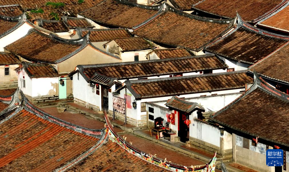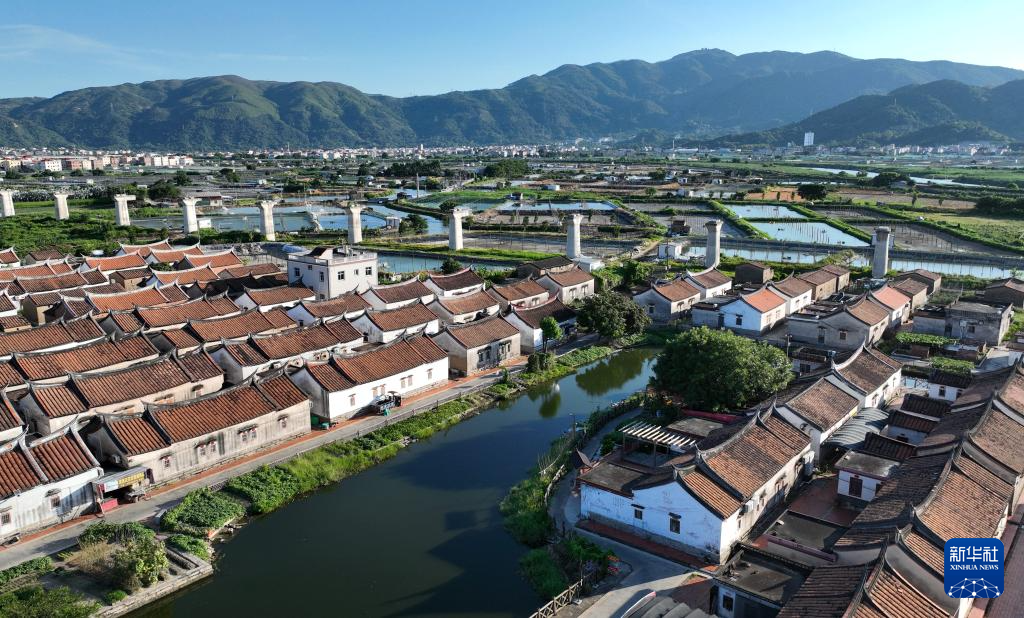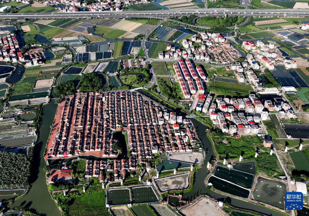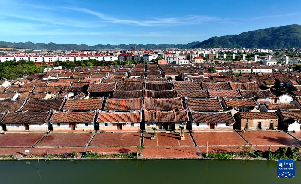 漳州龙海区东园镇埭美村的古厝,横竖对齐、整齐划一(7月10日摄,无人机照片)。